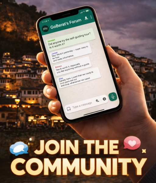 Connect with fellow travelers in the GoBerat community forum. Ask questions, discover hidden gems recommended by other visitors, and gain real insights from people who have explored Berat before you.